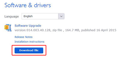 4. Si hay una versión más nueva disponible en la sección de soporte, descargue el archivo y guárdelo en su computadora. Nota: Generalmente, la actualización de software es un archivo comprimido .zip, que requiere un software especial para descomprimirlo (por ejemplo, Winzip o WinRar).